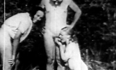 Old-school porn in the forest with two ladies
